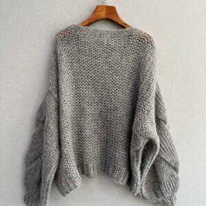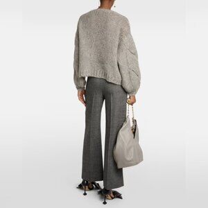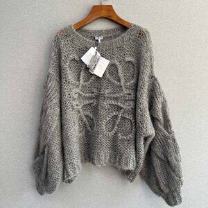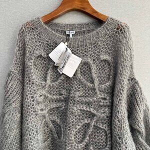 Loewe Anagram Cable-Knit Sleeve Gray pullover Sweater