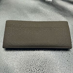 Loewe Anagram Repeat Textured Long Wallet Taupe With Silver Bifold Cardholder