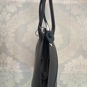 Very structure black leather Loewe Purse with brown suede interior. Very sleek looking.
