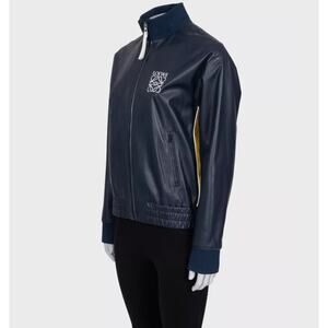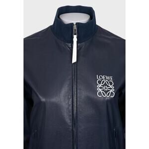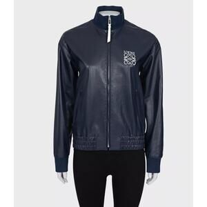 Loewe Blue Leather Jacket with Logo Detail Sz.38/M