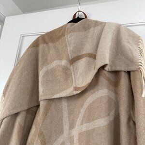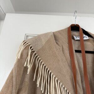 Loewe Cape Blanket Shawl Fringe In Neutral Cashmere Wool With Belt Sz 36