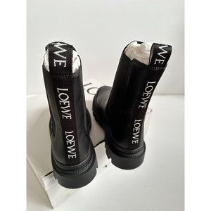 Loewe Chelsea Boots Black Leather Back Logo Pull
