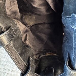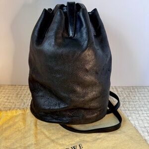 Elegant Loewe drawstring bucket backpack shoulder made by Loewe with genuine black Lambskin Leather (any marks are natural.)