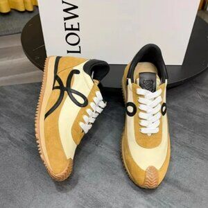 Loewe Flow Runner Sneakers Beige Suede Black Leather