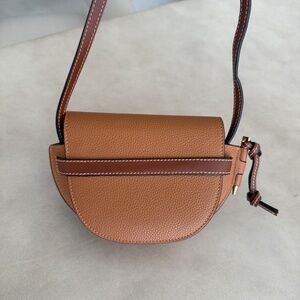 Loewe Gate Dual Mini Bag Brown Tan Crossbody Saddle Bag Pebbled Leather
