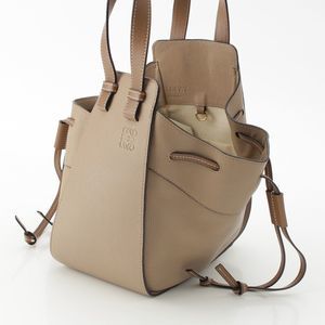 Loewe Hammock Drawstring Small Leather 2WAY Shoulder Bag Handbag Beige And Brown