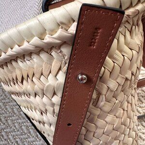 Loewe Ibiza Leather-Trimmed Raffia Bucket Bag (NEW)