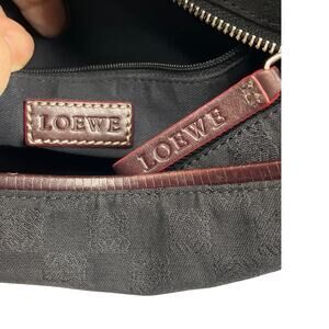 Loewe Jacquard Logo Shoulder Bag Black Gray Leather Trim Red Edge
