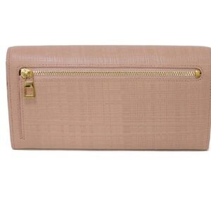Loewe Long Continental Wallet in a sophisticated blush beige tone. Engraved calfskin leather body. Gold hardware with snap closure and zipper compartment. Leather and fabric interior features 2 bill sleeves and 14 card compartments along with center zipper pocket. Debossed designer anagram. Interior is pristine in condition. Exterior has minimal signs of use. (Images of corners have been magnified for detail.) Third party authentication included.