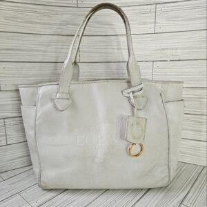 Loewe Madrid Heritage Pebbled Leather Tote Bag in Off White