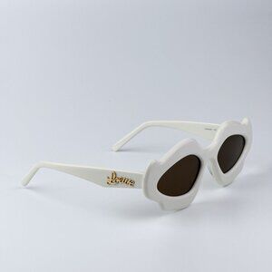 Loewe Men BRAND NEW Sunglasses LW40109U 21E CURVY Shiny Ivory Brown Geometric