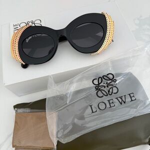 Oval sunglasses crafted in acetate with multicoloured crystal pavé embellishments and LOEWE in a gold finish on the arm.