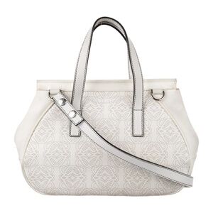 Loewe Vintage Leather Trim Anagram Shoulder Bag White Top Handle Women’s Purse