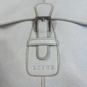 Loewe Vintage White Pebbled Leather Buckle Flap Crossbody Bag - Preowned
