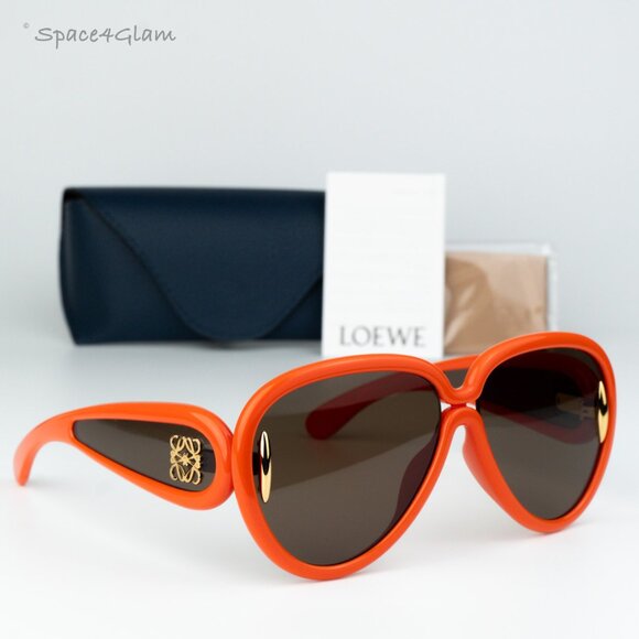 Loewe Women Sunglasses Shiny Orange Brown Pilot LW40132I 42E NEW AUTHENTIC