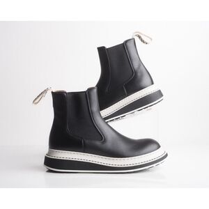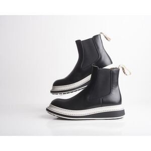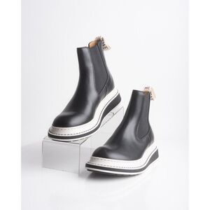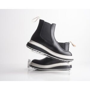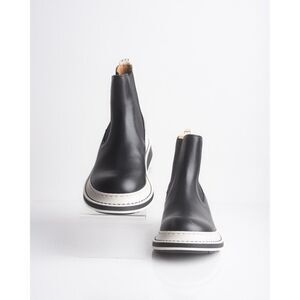 Loewe Womens Black with white trim Leather Pull On Platform Ankle Chelsea Boots