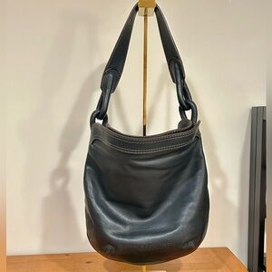 Interior: Brown fabric lining, 1 zippered pocket, 2 open pockets. 1 key ring. Capacity: large