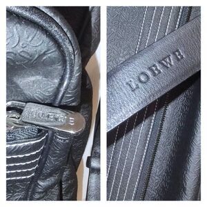 Absolutely stunning Loewe leather/coated canvas full garment bag in excellent preloved condition. Lots of pockets and space for suits, outfits, accessories. If you look at it up close, you can see the Loewe logo embossed all over the surface and inside. The attention to detail is amazing!