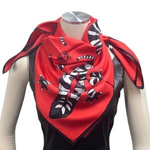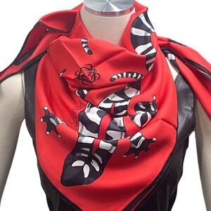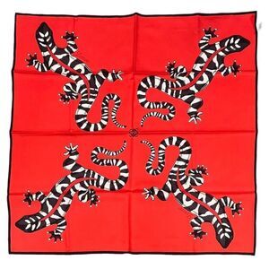 New Loewe multicolor Square silk scarf reptile print Red Black White Alligator