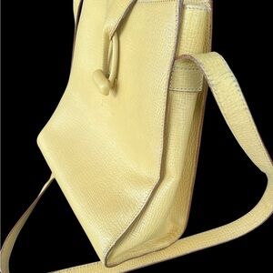 Chic Loewe crossbody in chic yellow leather. Stylish and versatile for any outfit. Bag is in excellent condition with minor wear. Has a long adjustable shoulder strap to wear crossbody or shoulder. Inside is a beautiful tan seude in clean condition