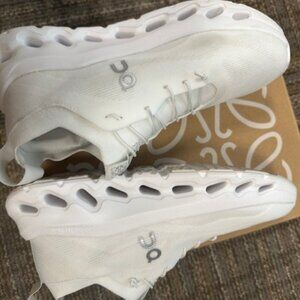 The breathable white exterior and lining color, make these athletic running shoes a stylish addition to your wardrobe. Designed with comfort in mind, these sneakers feature a size of US8.5 and EU40, making them perfect for women who want to look and feel great while staying active. The On ClouditxLoewe product line ensures that you get the best quality in both style and performance. Step up your sneaker game with these Loewe x On Cloud women's sneakers. Good used condition, no damage on the material and has some blueish stains on the top. Original box. Please look very carefully to the pictures to make the correct choice.