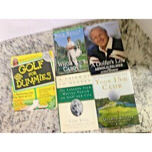 This is a bundle of 5 golfing books that includes mixed titles and authors such as Palmer, Kite, Rotella, and Reilly. The books are available in both hardcover and paperback format, and are written in English. The books are intended for young adults and adults, with features including illustrations, nonfiction narratives, and a focus on golf as a sport. The books were manufactured in the United States and are categorized under Books & Magazines.