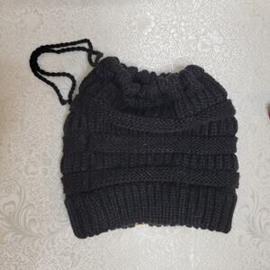 black ponytail beanie