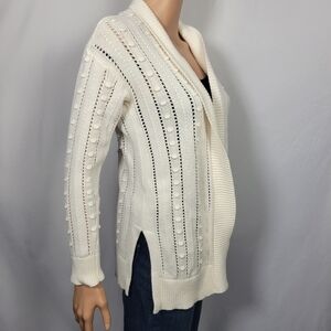 Loft Cream Cardigan with Eyelet and Polka-dot Textured Detail Size XS