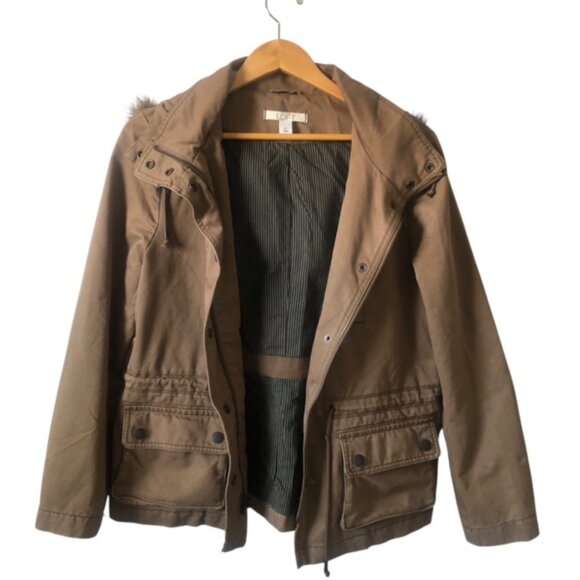 Loft 100% Cotton Military Coat Jacket Size M Brown Classic