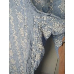 Loft 100 linen blue pants with white embroidery floral diamond allover design pants new without tags. Straight leg. Beachwear casual wear travel lounge wear pants. Pullon elastic waist drawstring close.