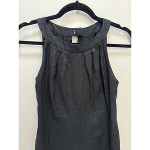 This LOFT black linen halter dress is a chic and sophisticated piece, perfect for warm weather and elegant occasions. Designed with a high neckline and pleated front, this dress offers a flattering silhouette. The keyhole button closure at the back adds a delicate touch, while the breathable linen shell and cotton lining ensure all-day comfort. Ideal for summer gatherings, date nights, or a stylish office look when layered with a blazer.