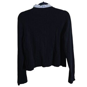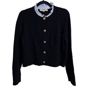 Loft 2024 Navy Gold Button Pale Blue Ruffle Collar Lady Cardigan Sweater Size