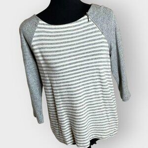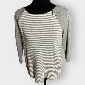 Loft 3/4 Sleeve Gray and White Stripe Top With Zipper Embellishment Size Small