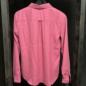 Size xsmall. 3/4 button blouse with 2 chest pockets. Collated with buttoned sleeves. Polyester. Excellent like new condition.