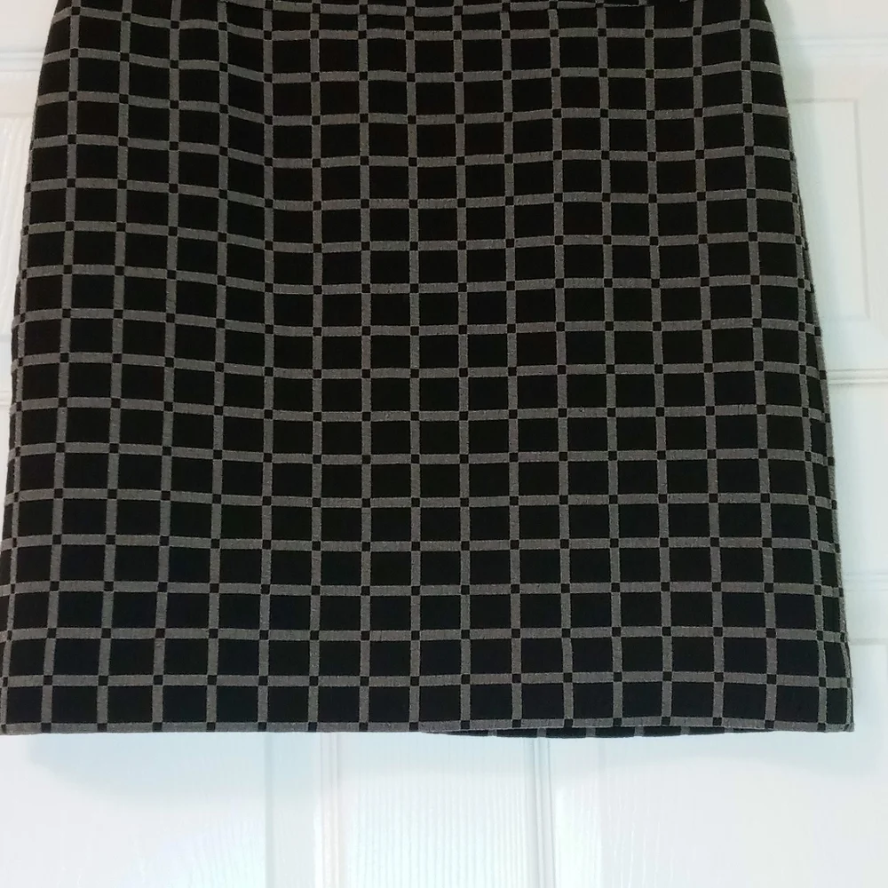 Black and gray skirt w/lining; closes in back with zipper and hook and eye; Size 8P