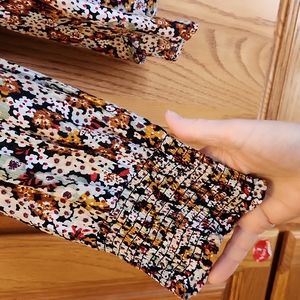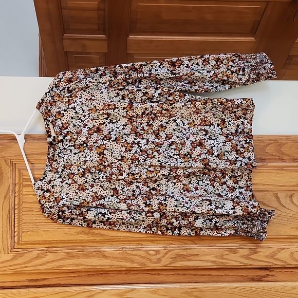 EUC - worn once. long sleeve floral print blouse, in beautiful fall colors. lightweight and easy to wear under a cardigan sweater.