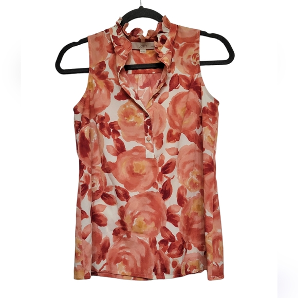 LOFT XSP Pink/peach sleeveless blouse tank with 5 functional buttons