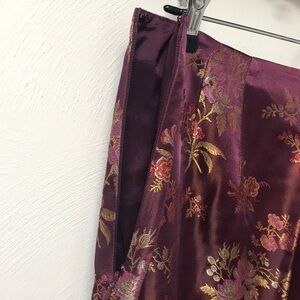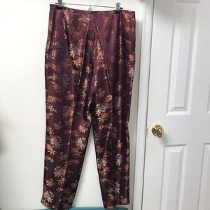 features floral print burgundy pants, no pockets, dry clean only