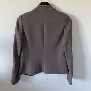 It's a light gray color with purple lining (hard to capture the true color but it's a beautiful and elegant blazer)