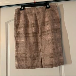 Loft A-Line Linen Midi Brown Brush Stroke Skirt