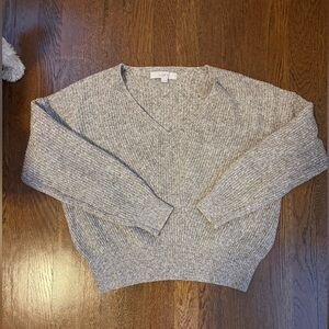 Loft Angled Ribbed V-Neck Sweater. Color perfect taupe. Size small. Gently worn