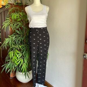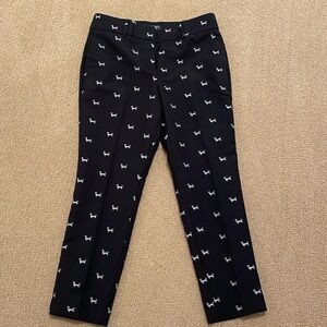 Loft Ankle Pants Women 8 Petite Black Gray Marisa Fit Pockets Poodle Dog Pattern