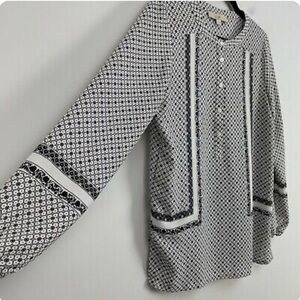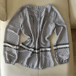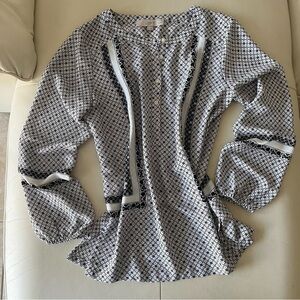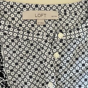 Loft Ann Taylor Black White Printed Blouse Top Small Petite Long Sleeve Shirt