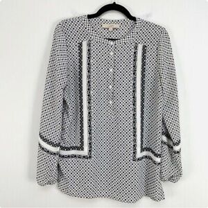 LOFT Ann Taylor Black White Printed Blouse Top Size Small Petite Long Sleeve Shirt