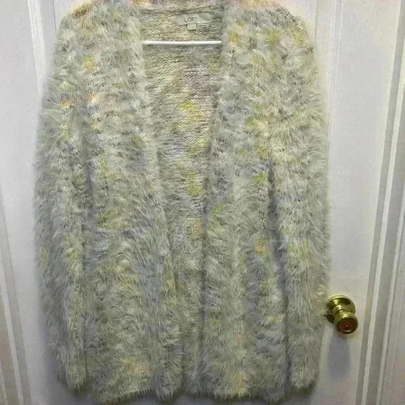 Loft Ann Taylor Cardigan Women M Marled Knit Open Front Eyelash Sweater