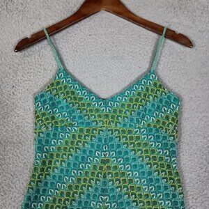 Loft Ann Taylor Dress Women's 2 Petite Green Crochet Spaghetti Strap Y2K Vinatge