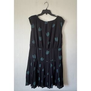 Loft Ann Taylor Heart Print Dress Women’s Size 10 Green Black Pleated Fun Retro