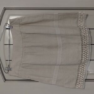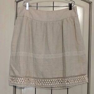 Loft Ann Taylor Linen Cream Skirt Crochet Trim Size 8
