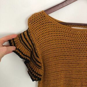 Loft Ann Taylor Mustard Orange/Yellow Black Open Knit Short Sleeve Sweater Top
