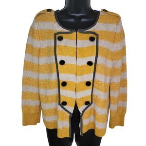Loft Ann Taylor Mustard Yellow Striped Military Sweater Jacket Size Medium